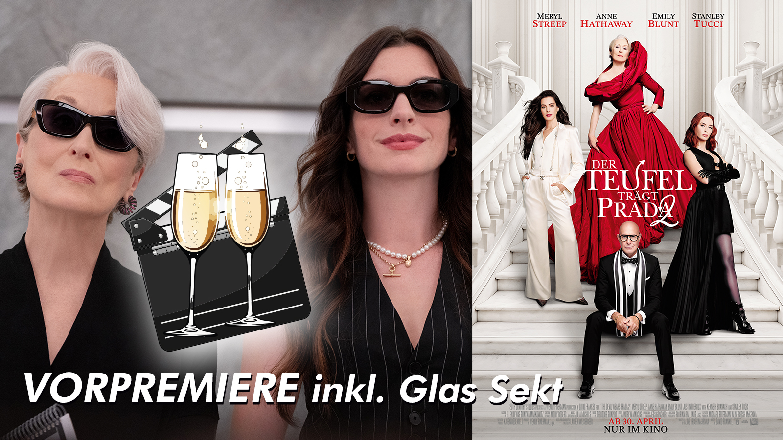VORPREMIERE "Der Teufel trägt Prada 2" Mittwoch, 29.04.2026 // Inklusive einem Glas Sekt! Wir freuen uns auf Euch!